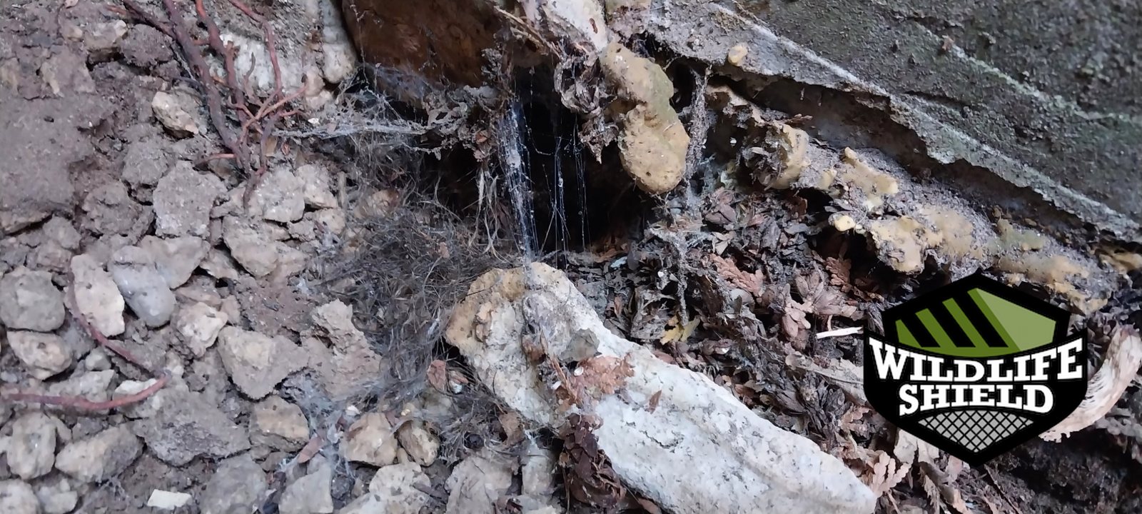 During the initial inspection, signs consistent with raccoon activity were observed beneath the deck. These included disturbed soil along the foundation edge and an active burrowing entry point. No evidence of skunk activity was noted.