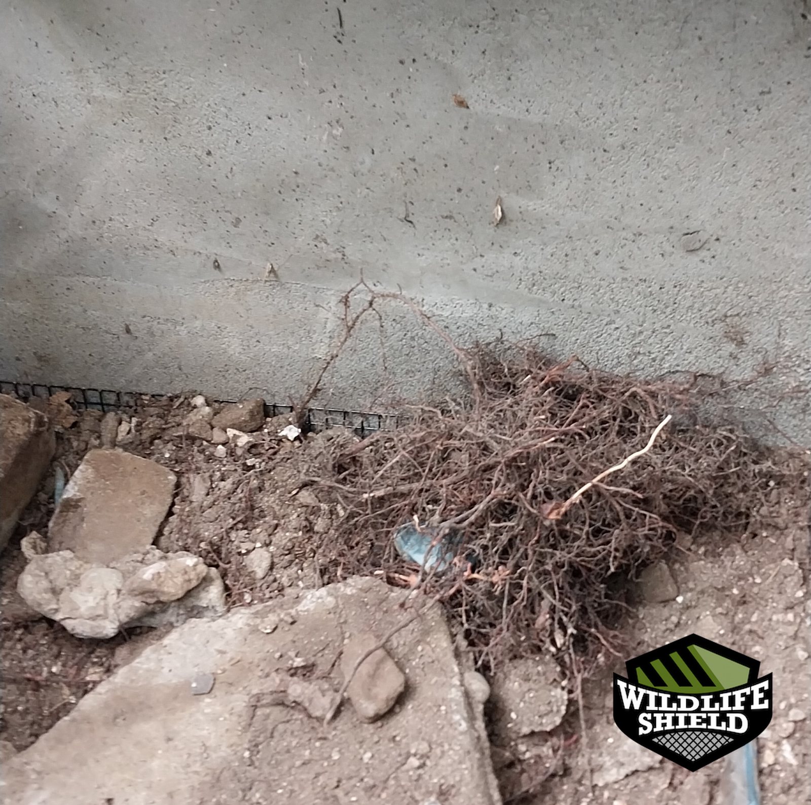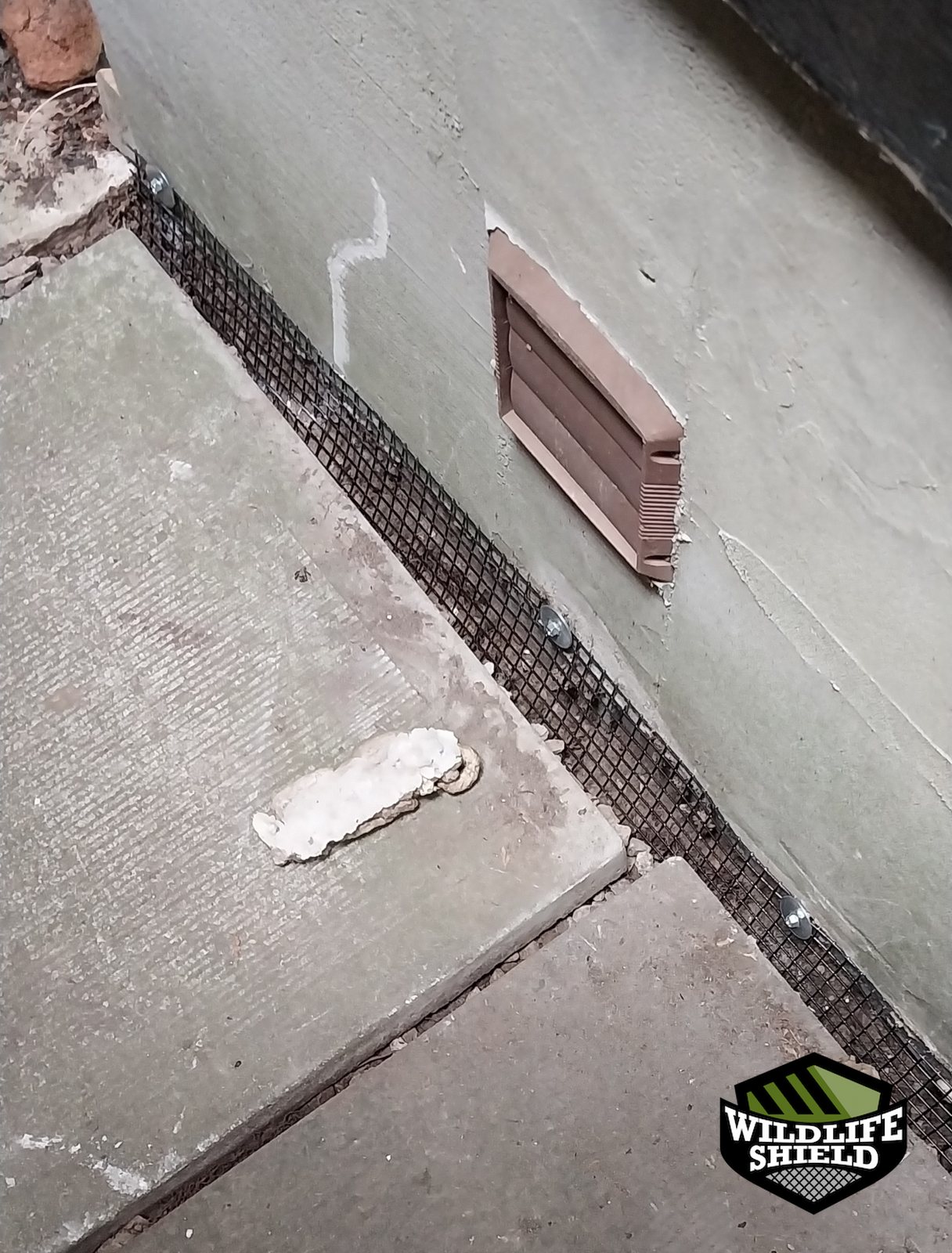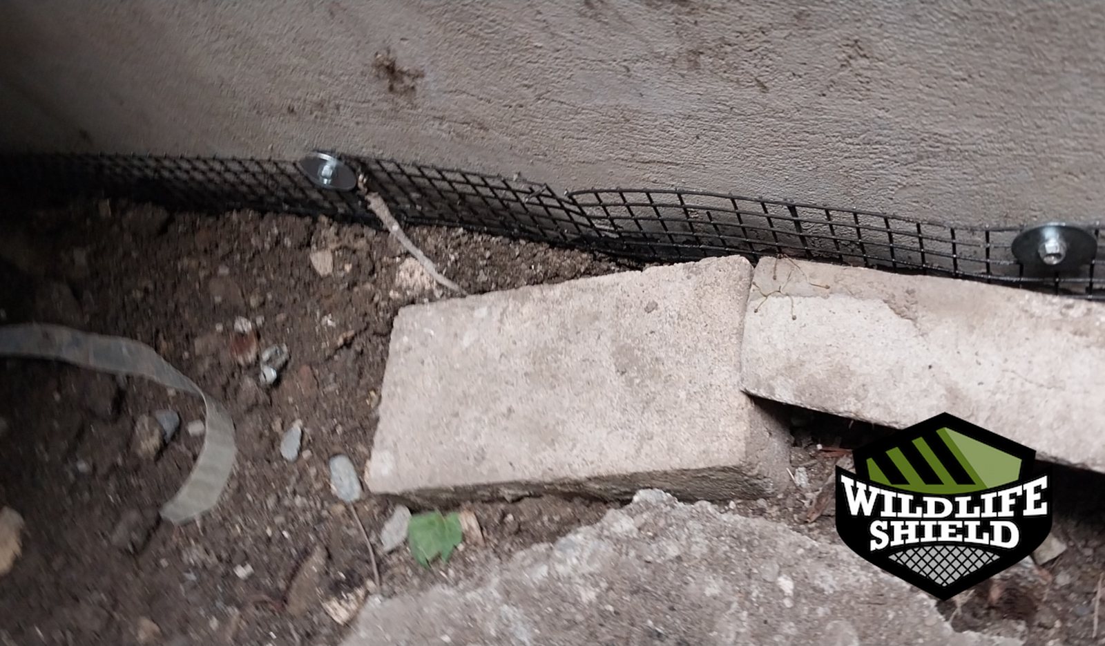 A trench was dug around the full accessible perimeter of the deck. Galvanized steel mesh was mechanically fastened to the structure and buried approximately one foot down and extended outward to prevent future digging. Additional screening was installed where needed along the foundation and vent areas. All work was completed by our team using standard wildlife exclusion practices.